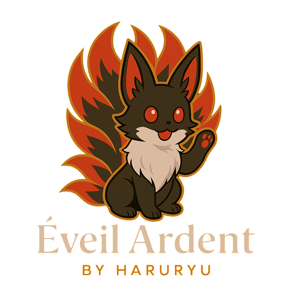 Haruya, notre renard de feu, symbolise la force et la protection de la nature. Le nom Éveil Ardent incarne ce double engagement : Éveil, pour le renouveau et la prise de conscience écologique. Ardent, pour la flamme, à la fois force destructrice et énergie vitale, en lien avec notre logo. by Haruryu, car ce projet reflète mon identité et mes valeurs. En choisissant Éveil Ardent by Haruryu, vous portez une mode éthique et responsable, tout en soutenant la planète. 5% de nos bénéfices sont reversés à une association pour protéger notre Terre.